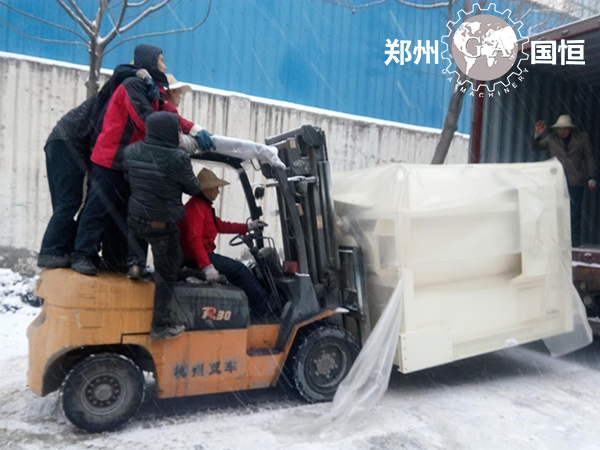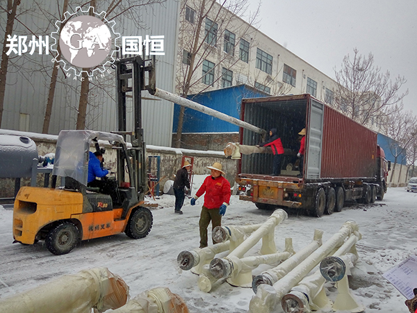 3.2018年1月7-9日,客戶指定發貨日期,適逢大雪嚴寒天氣,國恒員工戰天斗地,在冰天雪地中,按時按量保質完成9輛貨柜裝箱任務: